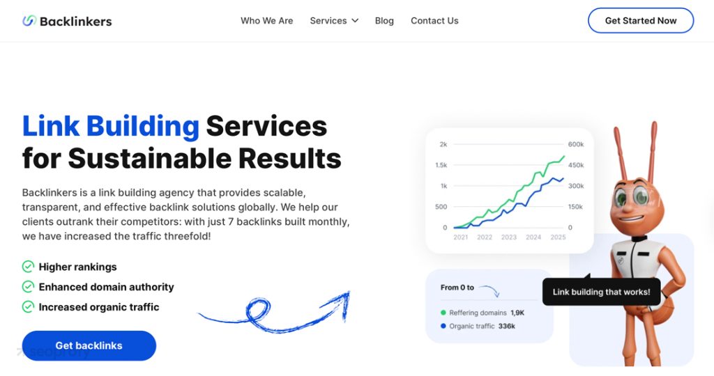 Backlinkers is a seasoned link building agency with a curated network of 20,000+ trusted websites. They use proprietary analytics tools and manually reach out to relevant sites to deliver high-quality and white-hat backlinks for their clients. In addition to manual research, they also do competitor research and site vetting.