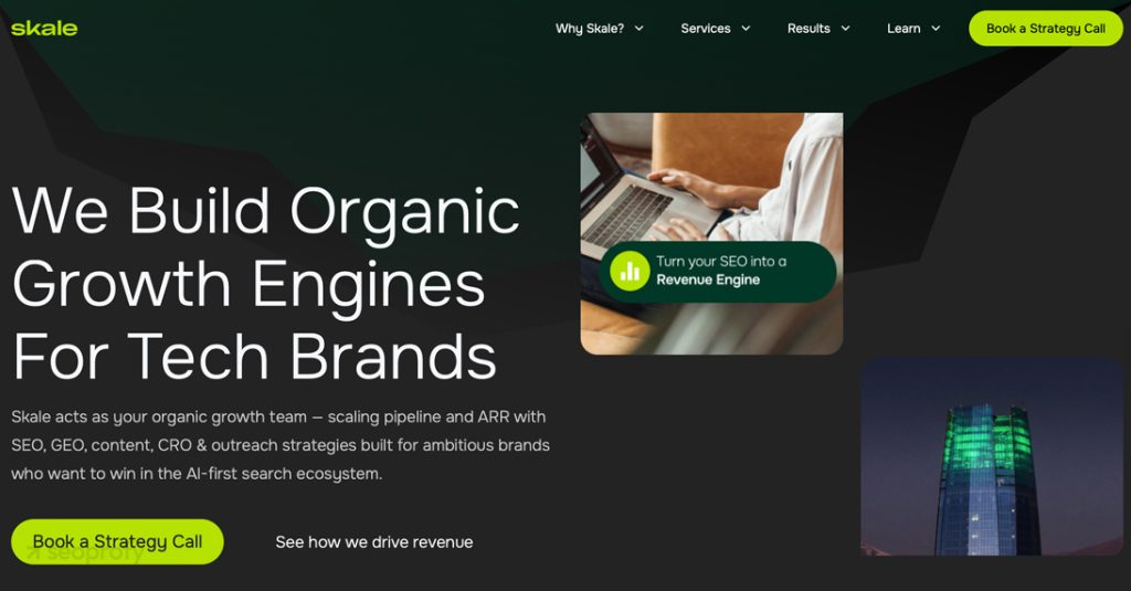 Skale | SaaS, B2B, MerTech | KPI-Led Link Outreach, Guest Posts on Niche Placements, Quarterly Link Reviews, Full SEO Strategy Packages | Custom. Projects start around $5,000, hourly rates $100–149 |